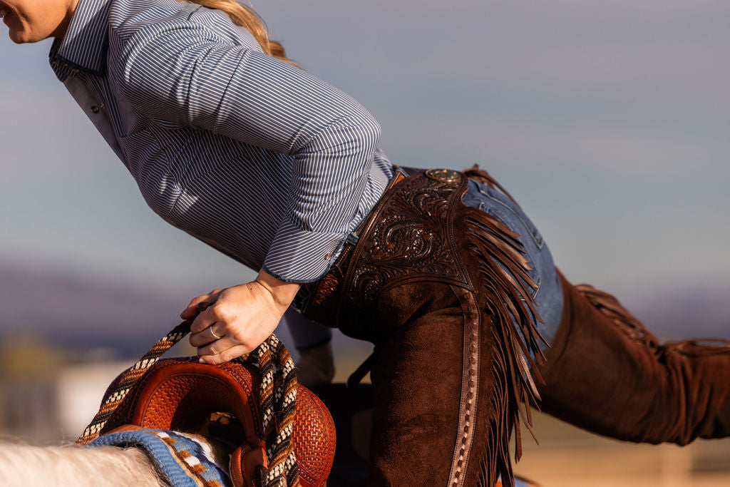 Chaps & Chinks are available online and at the shows with us! Compliment your favorite CCB Western or Ranch Shirt with the most beautiful pairs of chaps!