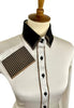 Black Micro Dot on Top Collar // Black & Whiskey Houndstooth on Bottom Collar