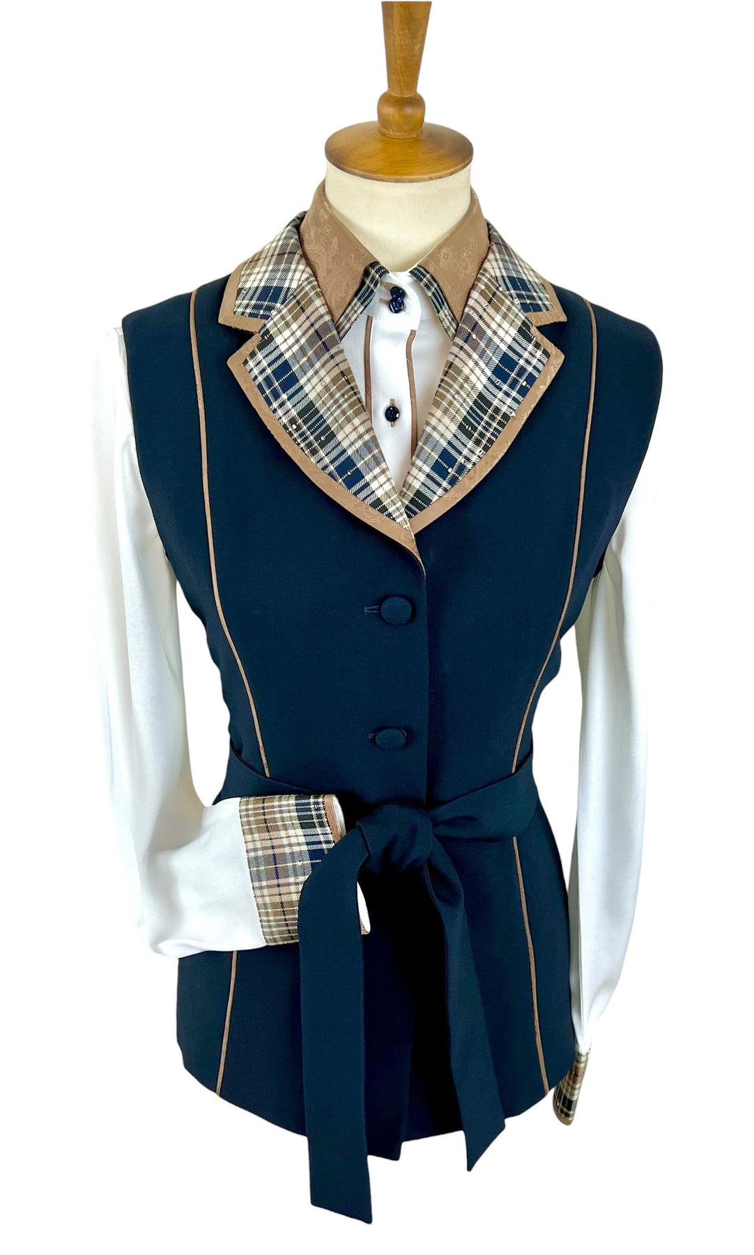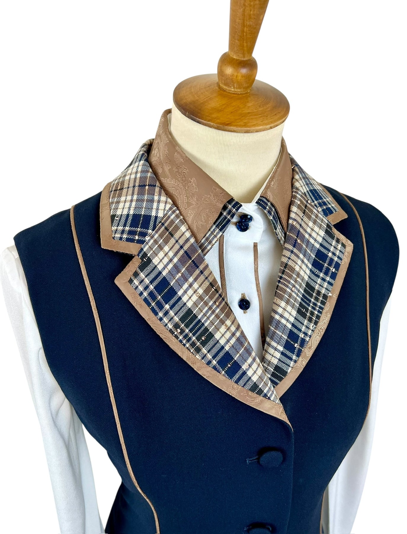 Navy & Mocha Plaid on Collar & Lapel + Mocha Paisley Flat Trim