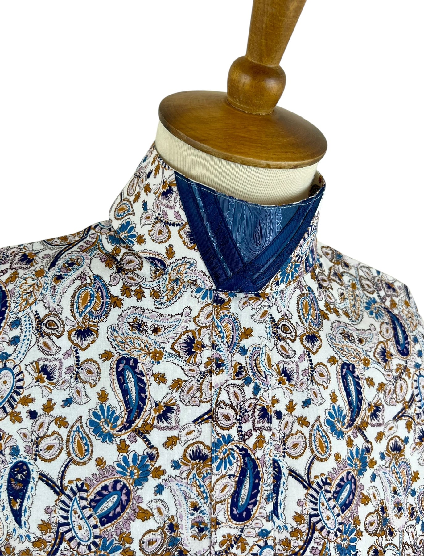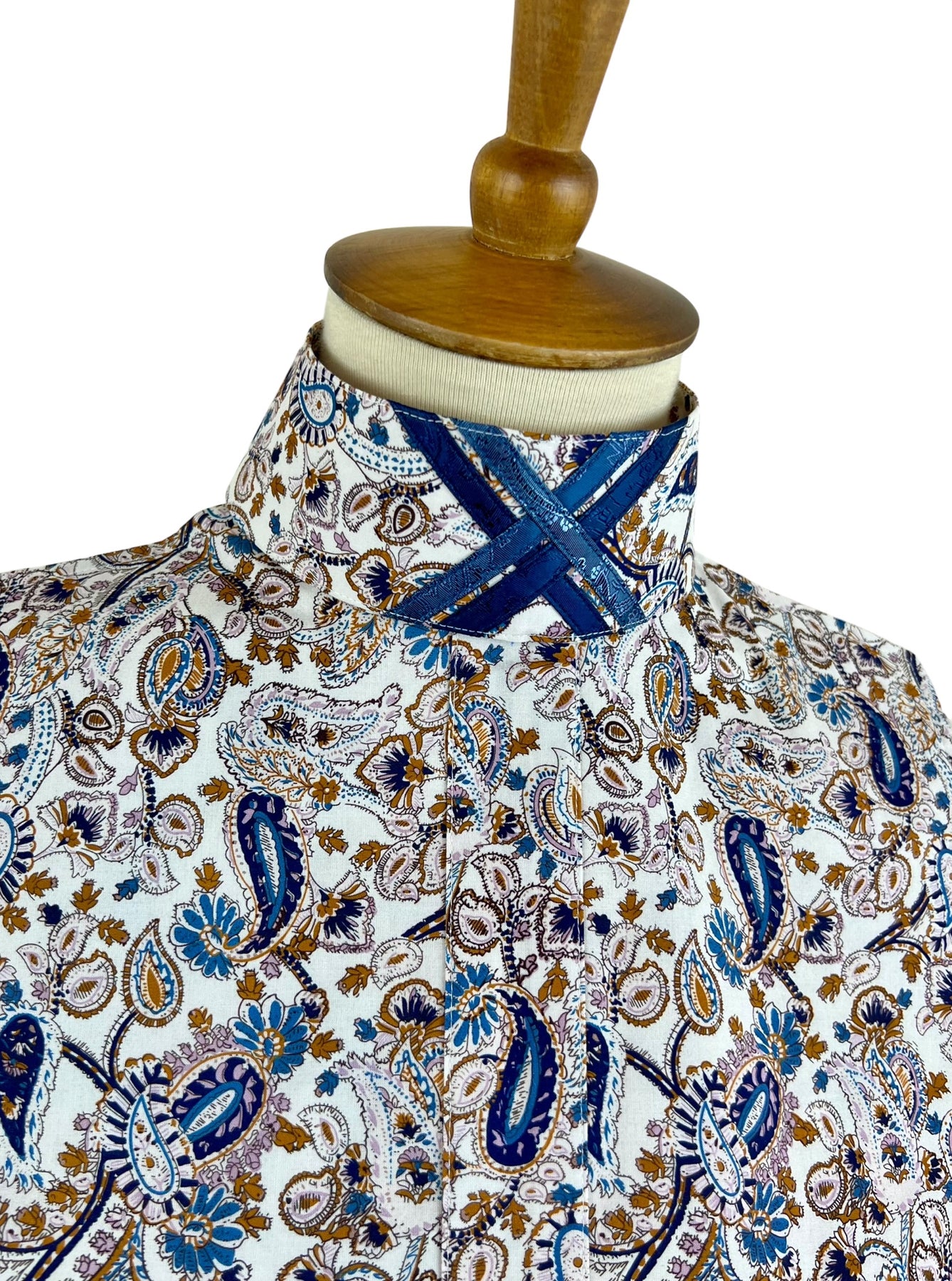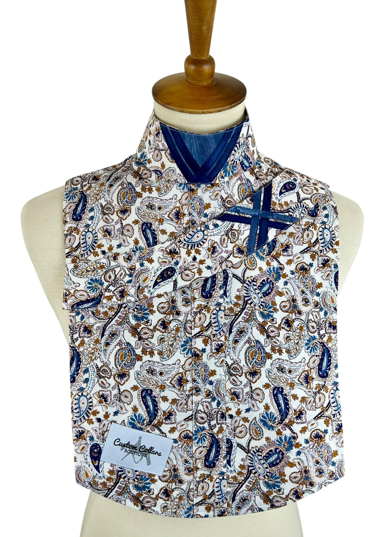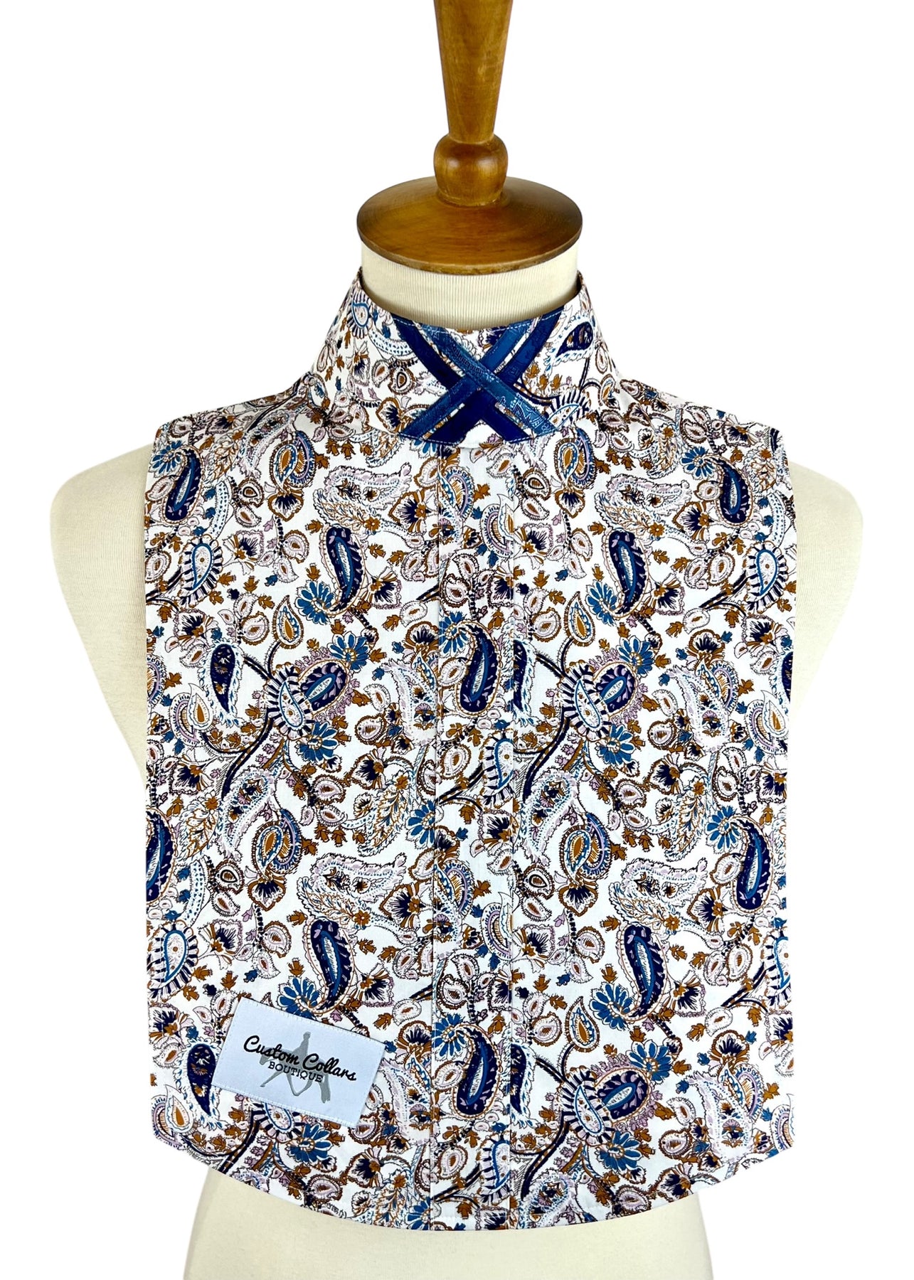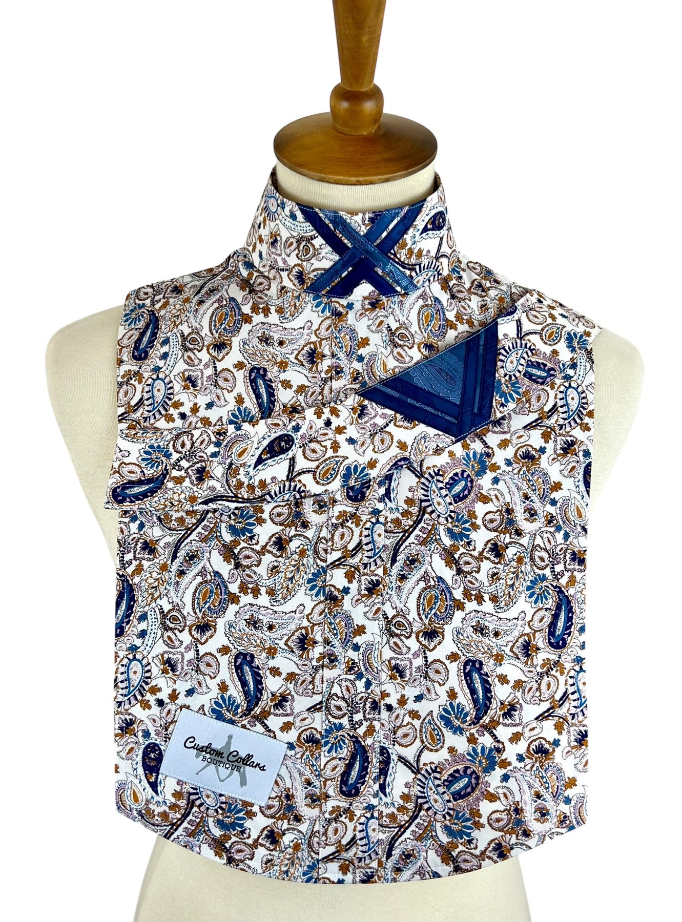 Stunning blue & brown paisley dickie with two detachable, embellished collars!