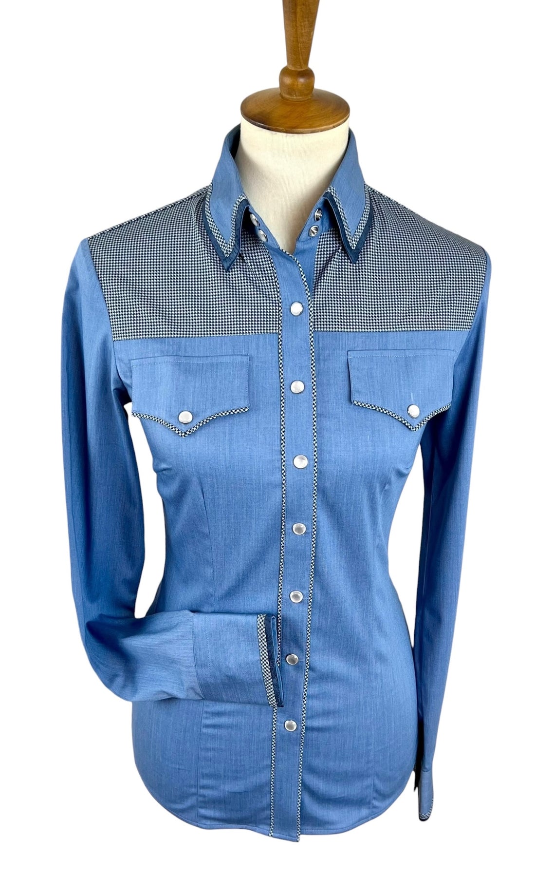 Houndstooth Trim on Placket and Front Chest Pockets