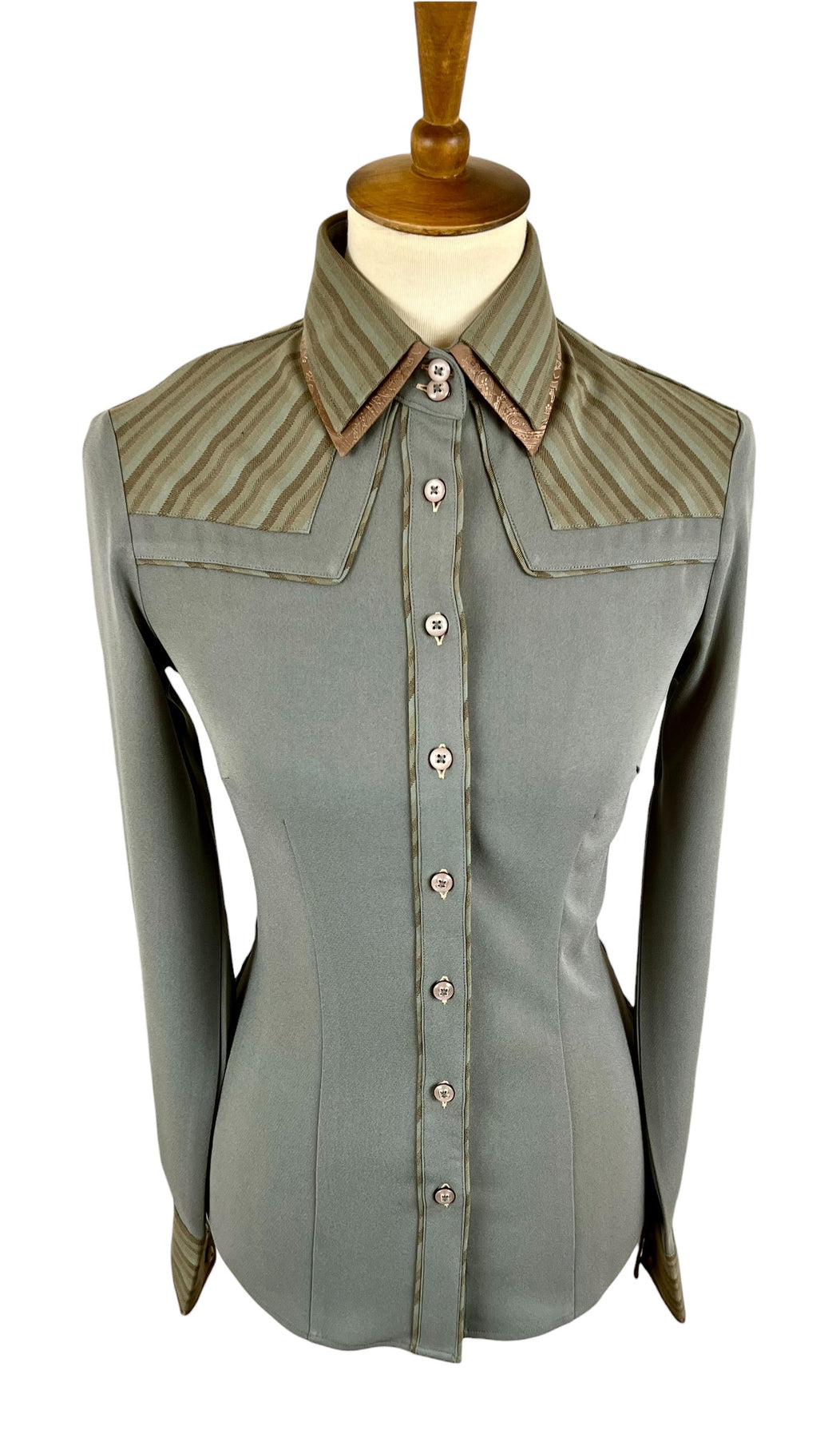 Stripe Filled in Front Yoke with Double Trim + Filled in Back Yoke with Brown Paisley Trim